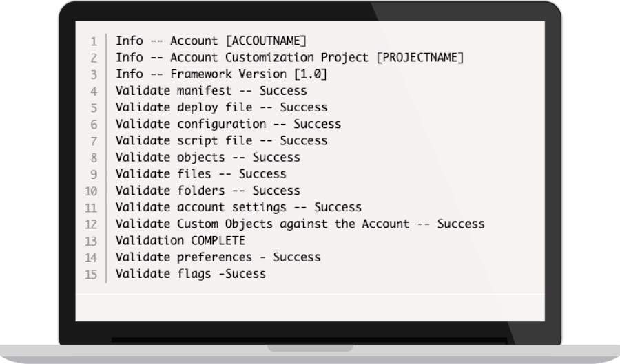 Before deploying and distributing customisations or applications, developers can use SDF to validate all aspects of their projects, including file dependencies, object definitions and structure — and catch errors before going live.