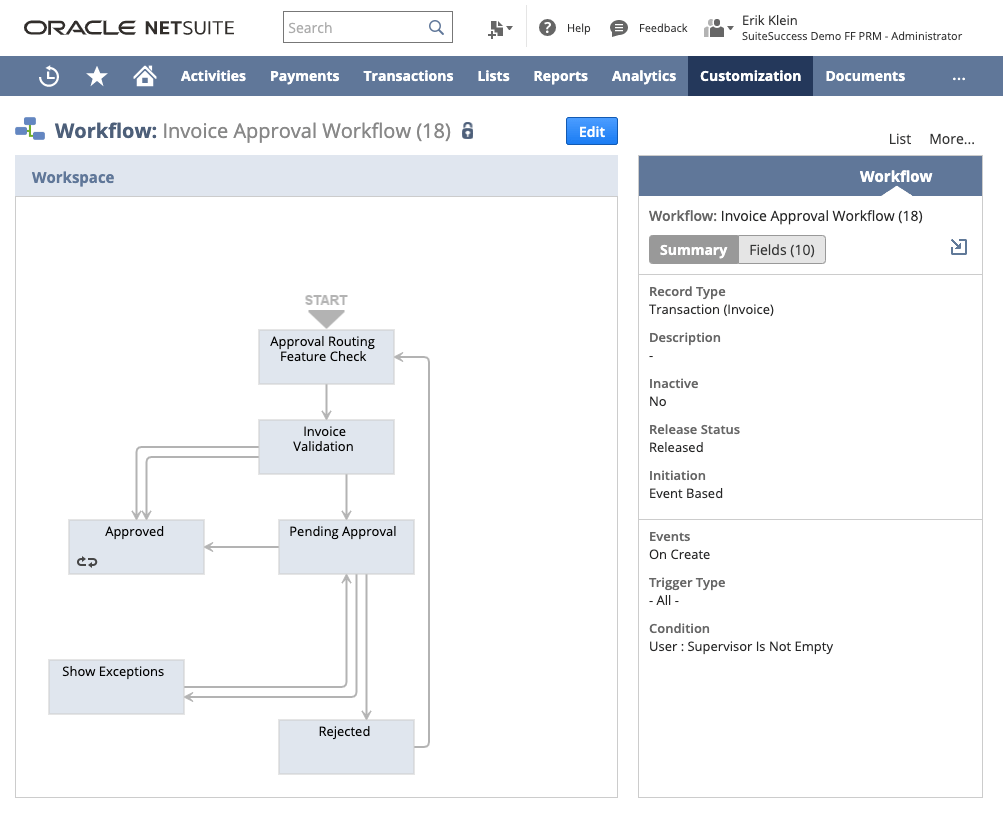 Workflows can be defined as custom objects by developers and securely deployed to any of your accounts with the SuiteCloud Development Framework.