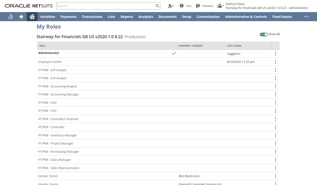 End users can be assigned roles with specific permissions and restrictions to see only the data, and use only the features, required for their jobs — right down to the field level. NetSuite provides a complete audit trail, tracking transactions by user login details and applying a timestamp to each change.