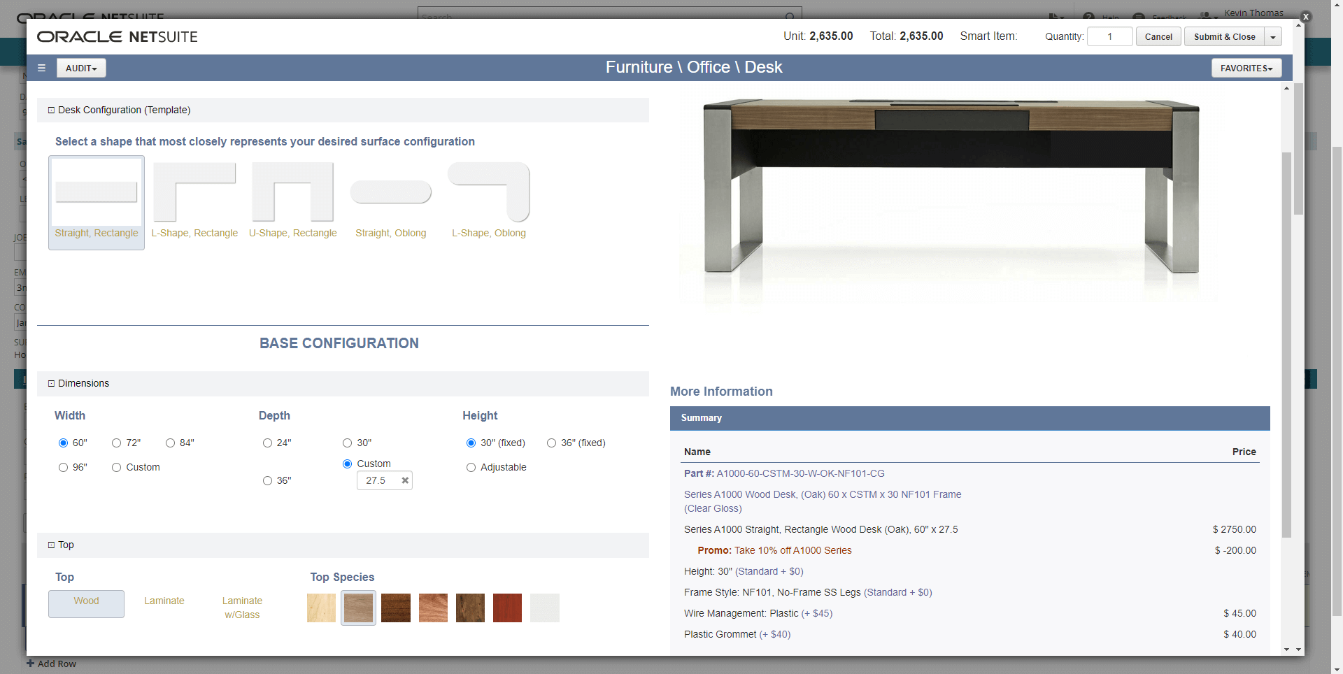 Leverage standard pricing data in NetSuite as a starting point, and then apply rules-based pricing based on the options selected as the product or service is configured. These dynamic prices are then available on the quote and the order to complete the transaction.