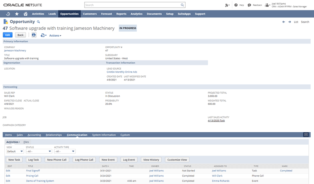 NetSuite Sales Force Automation Features
